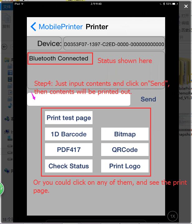How do we print a sample receipt using our Apple iOS Bluetooth print demo ?