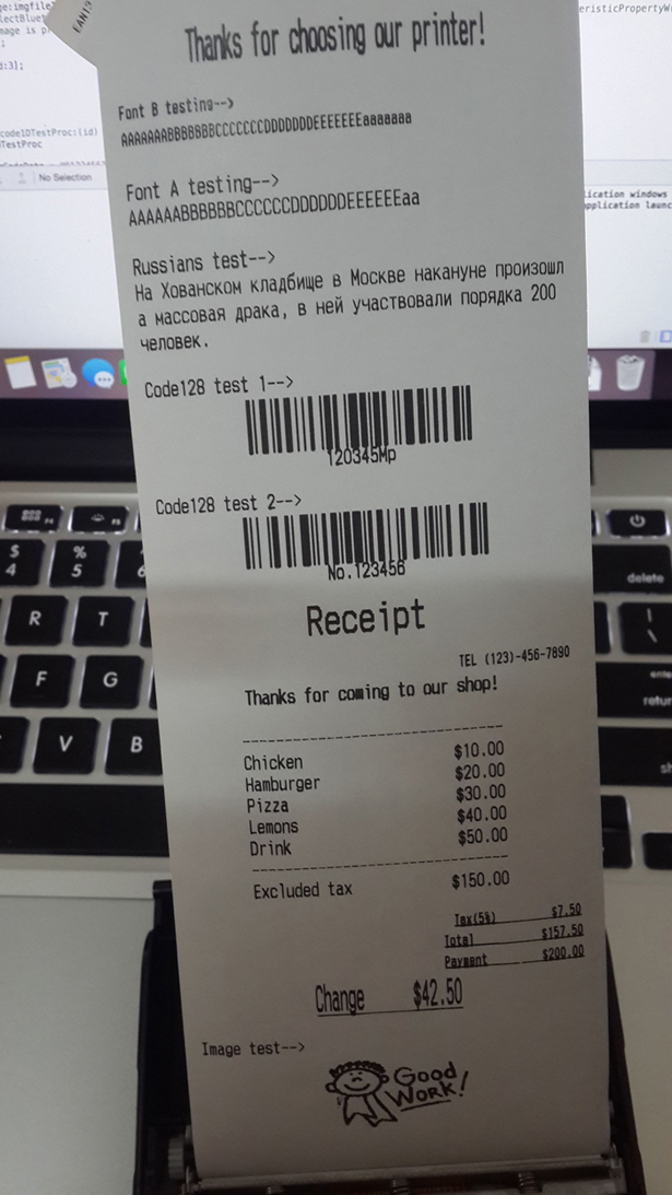 Battery Duration Standby time >70hours, can print receipts >1000pcs(each receipt length= 375px) with one full charge
